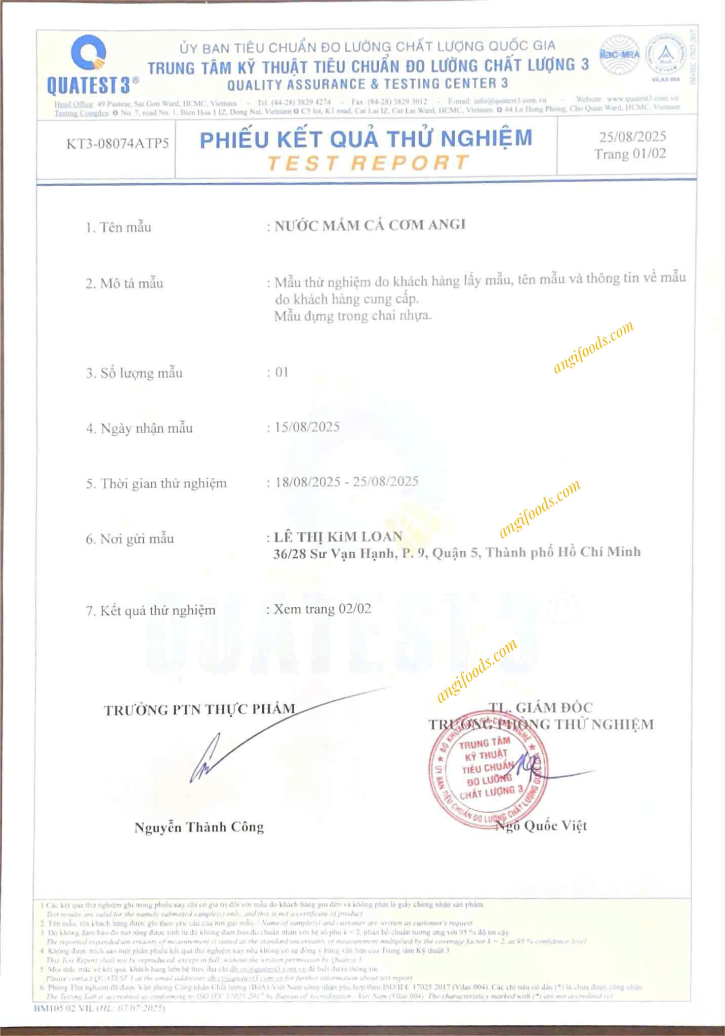 – Sản phẩm đã được Trung tâm Kỹ thuật Tiêu chuẩn Đo lường Chất lượng 3 – QUATEST 3 kiểm định chất lượng, đảm bảo an toàn và giữ trọn hương vị truyền thống.