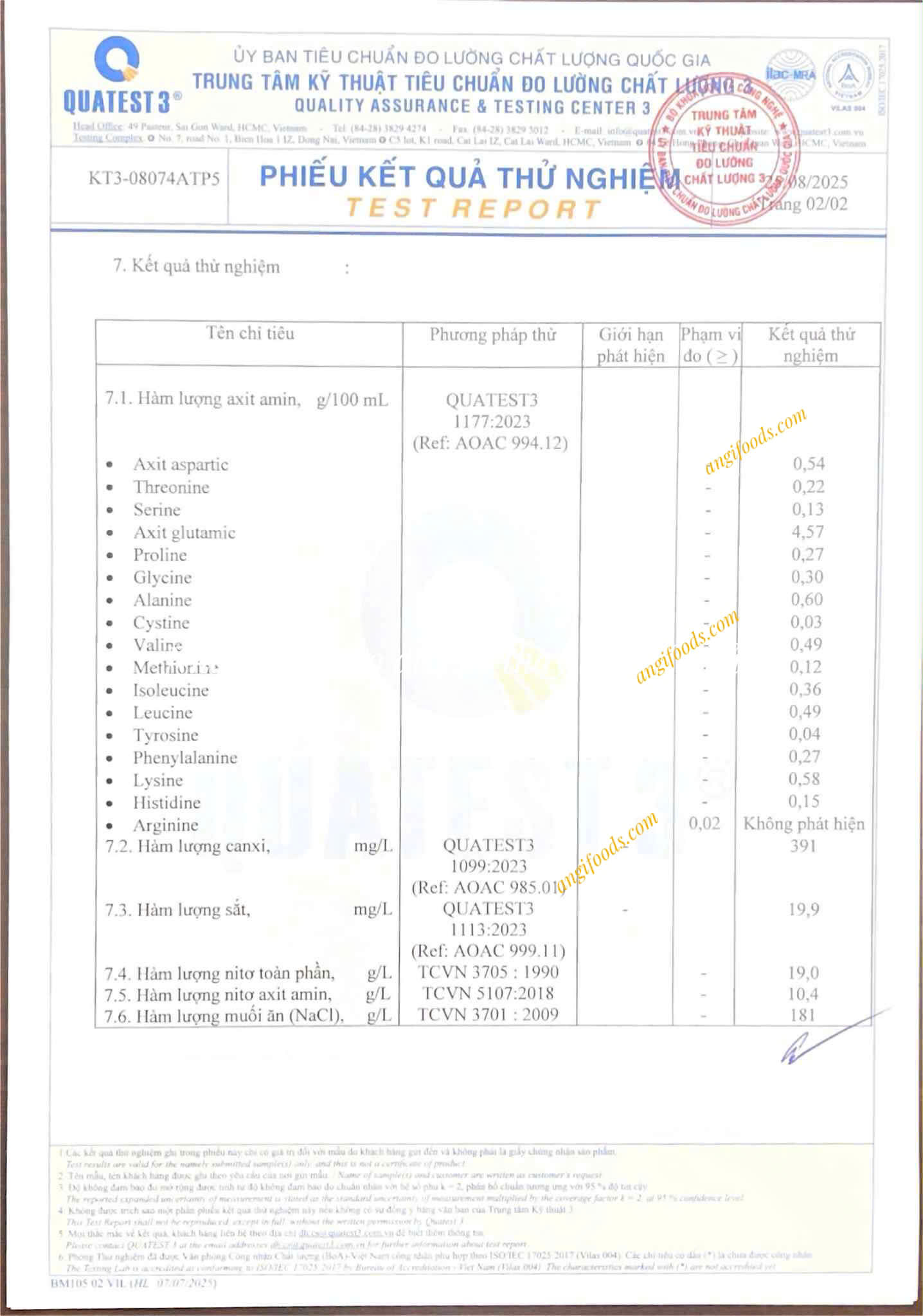 – Có Nitơ axit amin: 10,4 g/L → chiếm hơn 50% tổng nitơ, đạm dễ tiêu hóa, chất lượng cao.